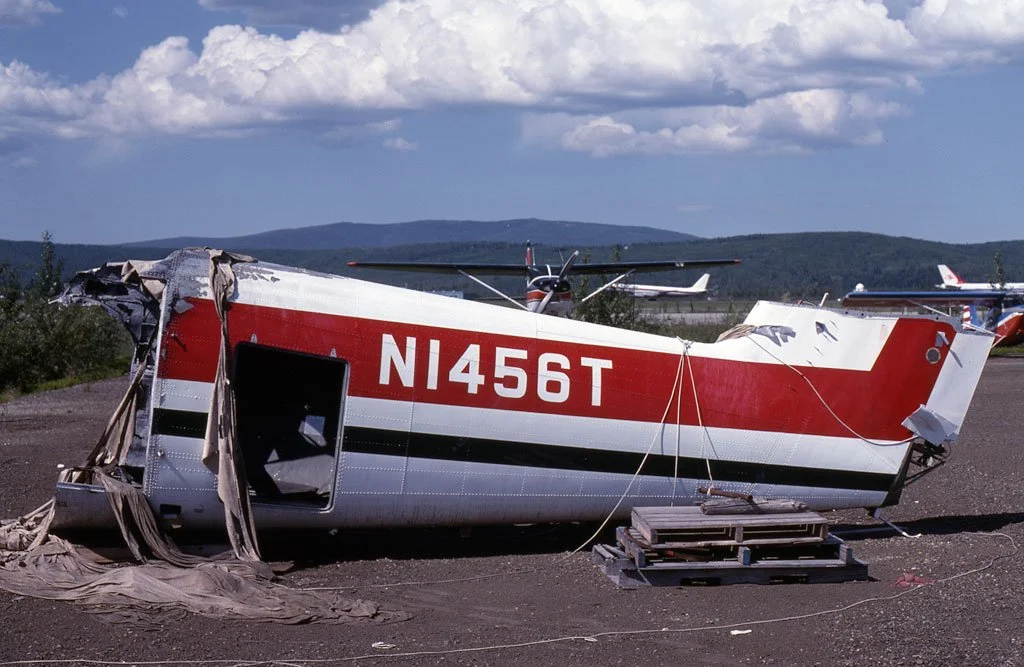 Damaged beyond repair in a hangar fire at Fairbanks, AK